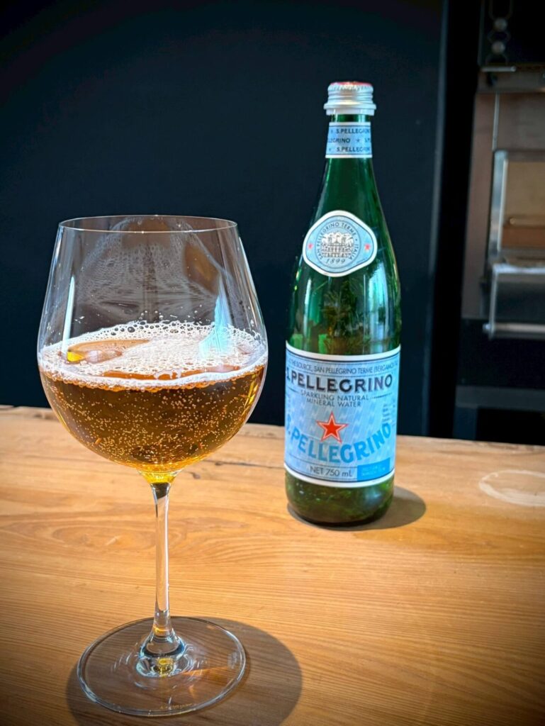 ノンアルメニューも豊富な中、ほうじ茶スパークリングを注文。