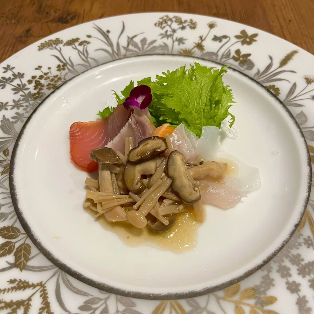 キノコの旨味が海のミネラル感を引き立て、序盤としてしっかり役割を果たす前菜でした。
